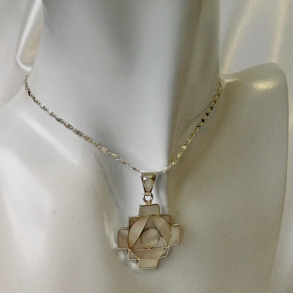 A delicate piece of jewelry meticulously handcrafted with 950 silver and embedded with precious gemstones.