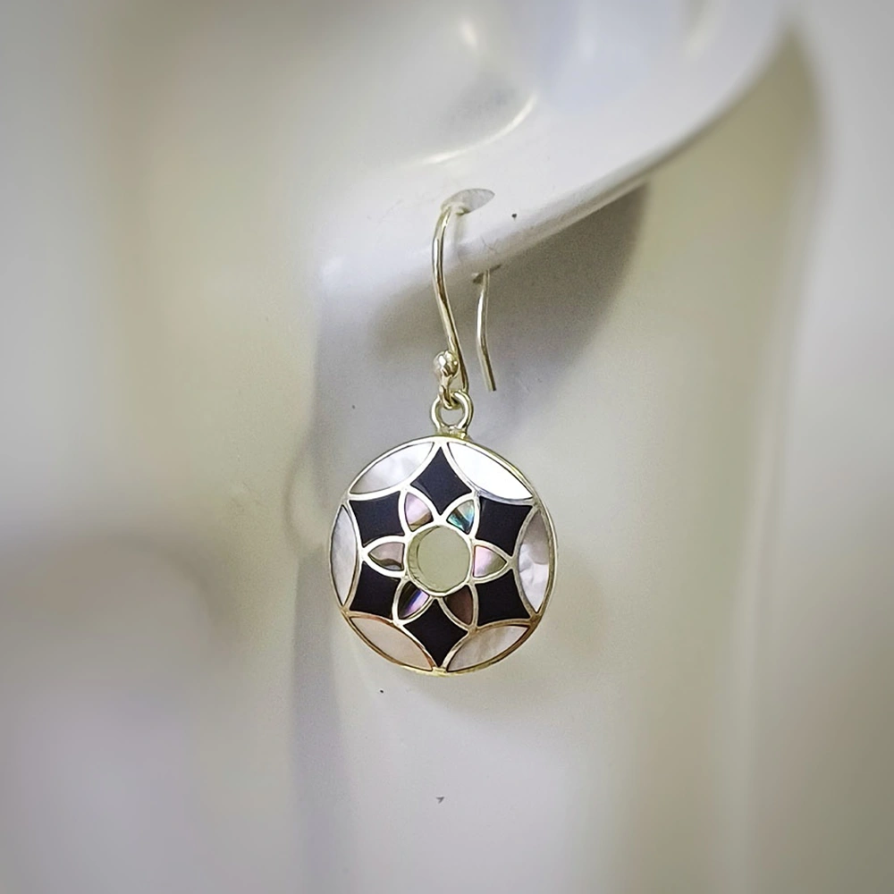 Divine Mandala Abalone Nacre Onyx Earrings