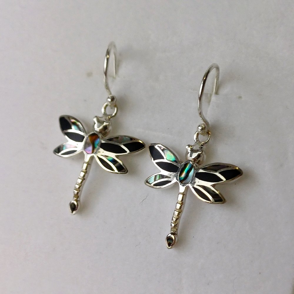 The Dragon-fly Abalone & Onyx Earrings are a delicate and elegant accessory inspired by nature. The design features a graceful dragonfly motif, often associated with transformation and adaptability, complemented by the shimmering beauty of abalone and the grounding qualities of onyx. These earrings are perfect for adding a touch of sophistication and symbolic meaning to any ensemble.