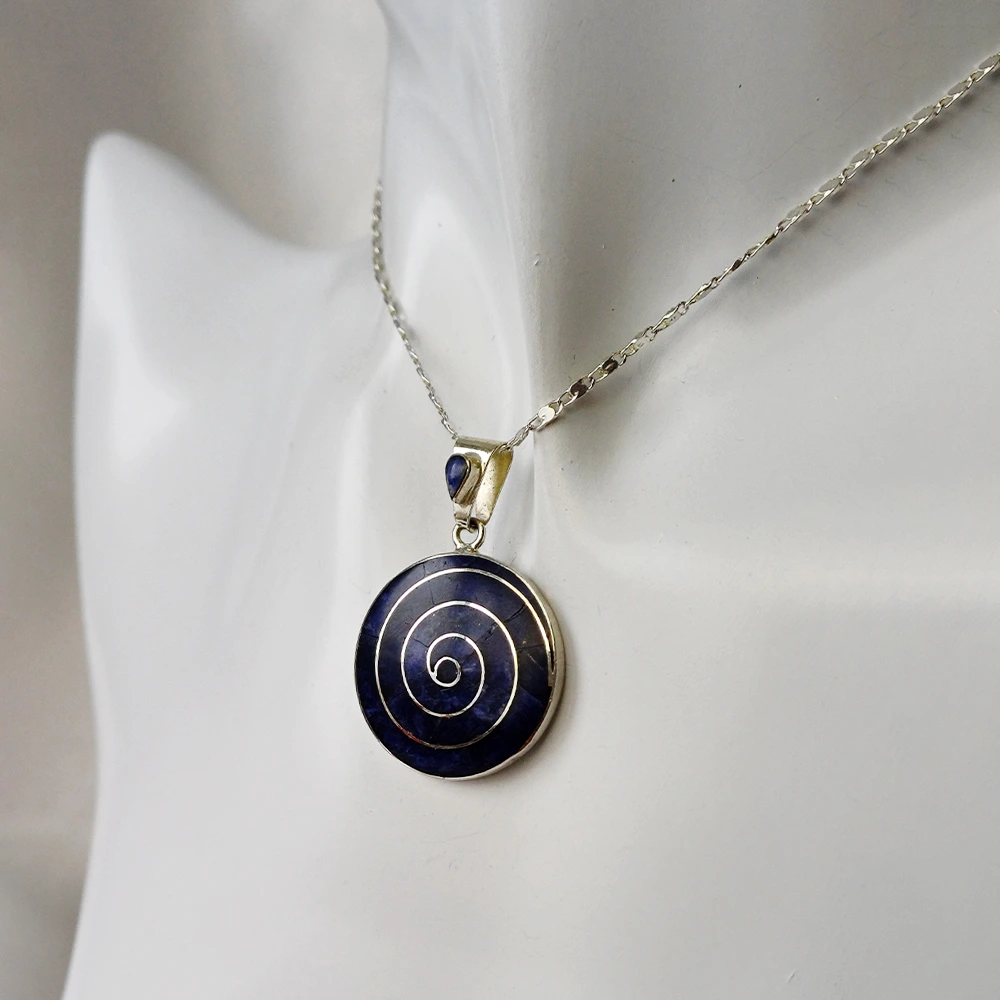 The Spiral Sodalite Pendant (size M) features a beautifully crafted spiral design that highlights the natural beauty of the stone. Often associated with clarity and insight, this pendant can symbolize spiritual growth and inner peace. Its elegant form makes it a versatile accessory for any style.